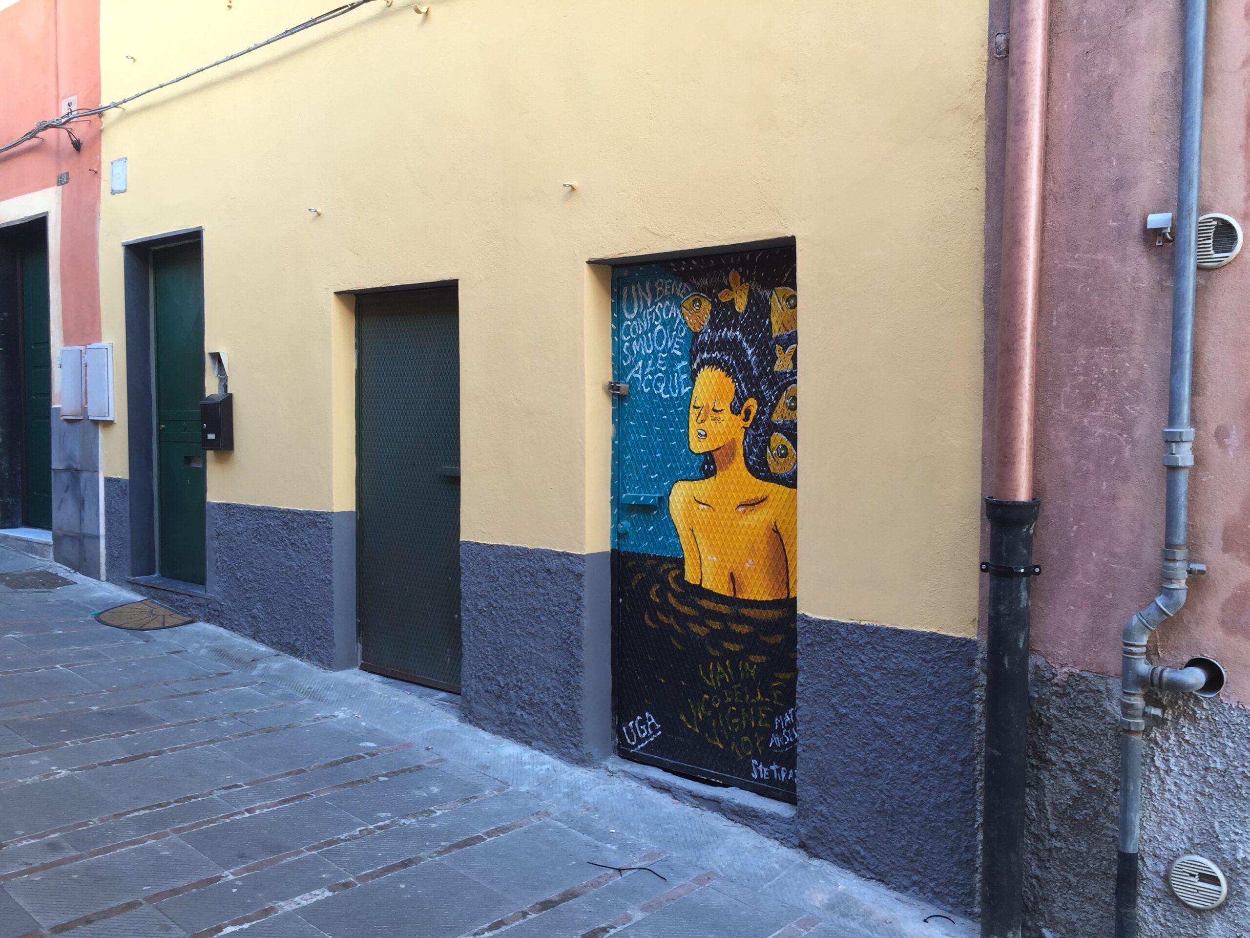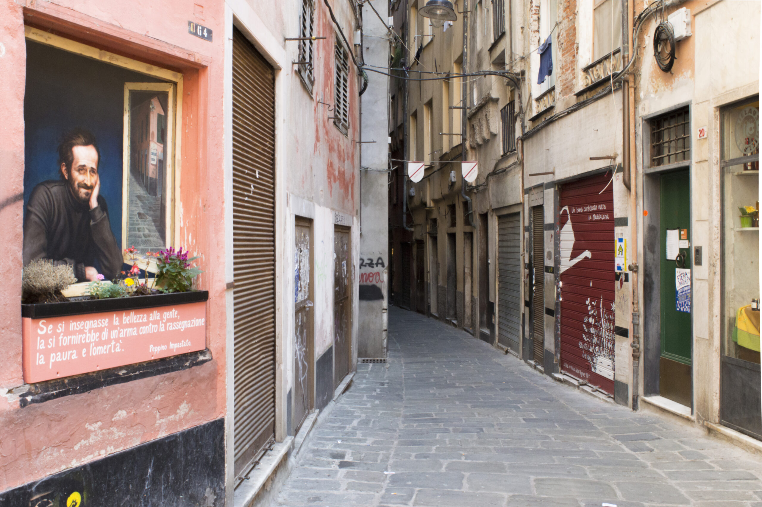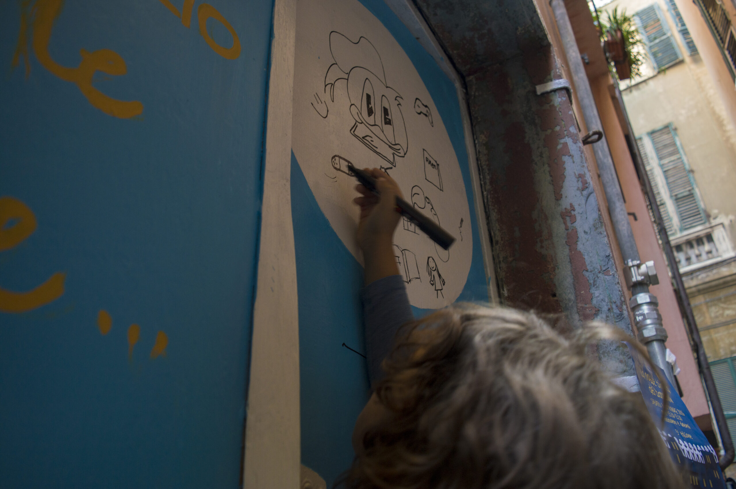 Dipinta dal gruppo scout Genova 5 della Maddalena in occasione della Fiera della Maddalena l’11 giugno 2016. Nello stesso vicolo di Insciästradda (al numero 14r), bene confiscato riassegnato della Confisca Caci.