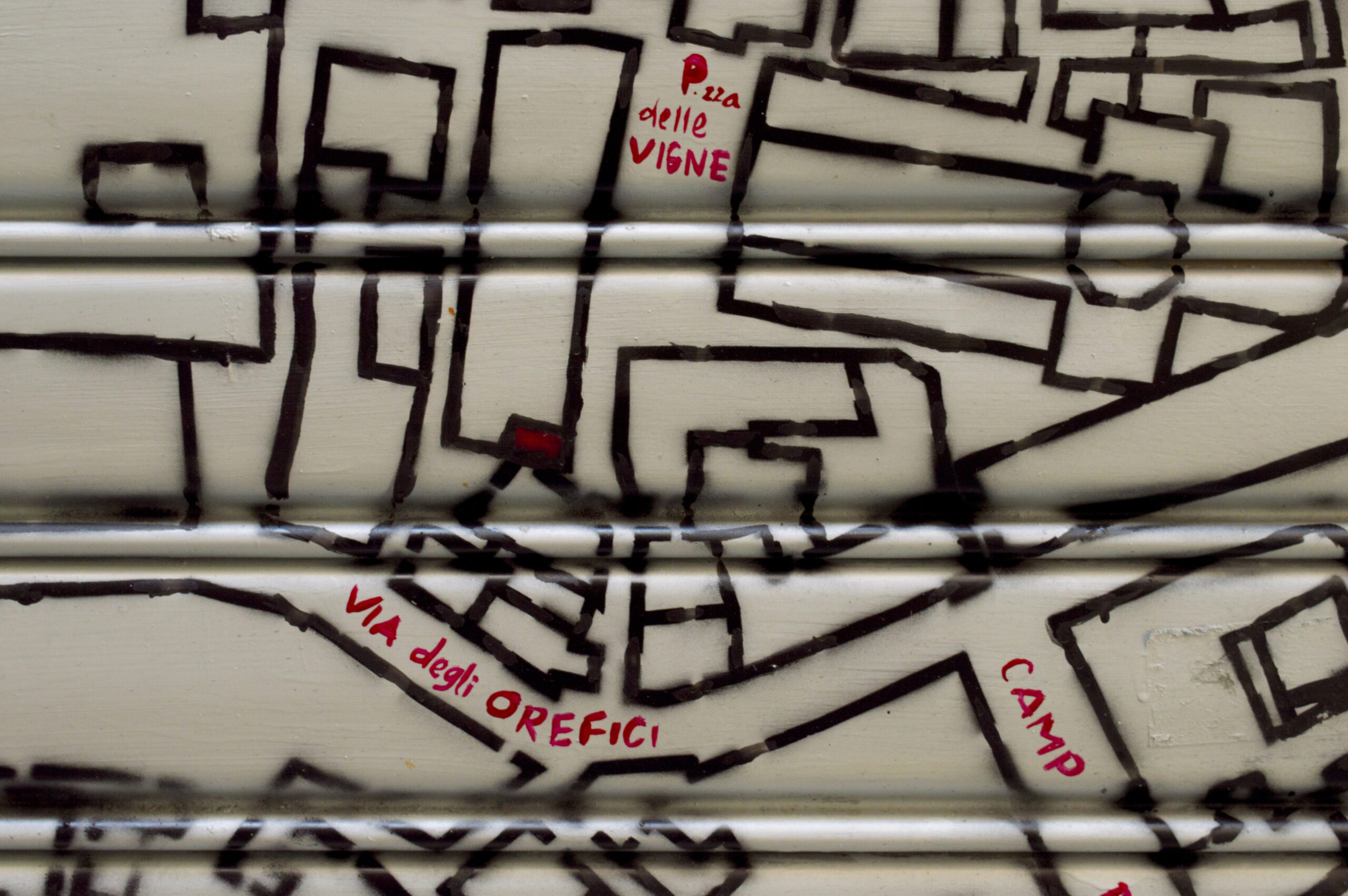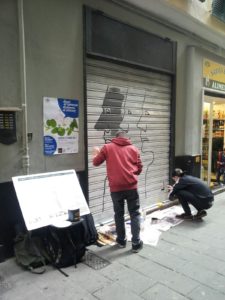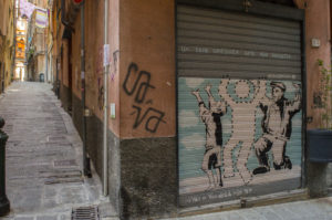 A metà 2016 il Cantiere per la Legalità Responsabile, in particolare gli autori di GOA cares ed il gruppo Agesci Genova 5 della Maddalena, hanno avuto un’idea: se si fa fatica a parlare alle persone, possono essere le stesse saracinesche a parlare.